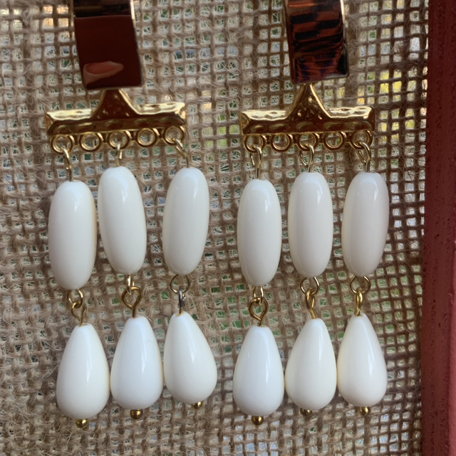 Boucle d’oreille cascade de perles écru